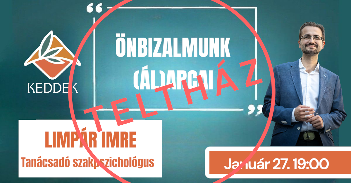 2026-ban is vár a Keddek a lelkednek változatos előadókkal és előadásokkal. Először január végén találkozhatunk, amikor újra Limpár Imre tanácsadó szakpszichológussal töltjük az estét. Előadása az Önbizalmunk (ál)arcai címet kapta. Időpont: 2026.01.27 19:00 Amikor tükörbe nézek, arcot, vagy álarcot látok? Az önbizalom pszichológiája lassan olyan, mint a foci: mindenki azt hiszi, hogy ért hozzá. Az előadás tiszta vizet kíván önteni a pohárba. Górcső alá veszünk pár népszerű tényt és tévhitet a témában – rendet téve közöttük. Fontos megkülönböztetésként kivesézzük, mi a különbség a külső és a belső önbizalom között. Nem utolsó sorban pedig az önbizalom fejlesztési lehetőségeit leltárazzuk.